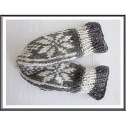 Disse deilige vottene med hvite og grå mønstre er perfekte for kalde dager. Laget av ull med myk fleece innvendig, gir de både varme og komfort. Enten du går en tur eller koser deg inne, vil disse vottene holde hendene dine varme og stilige.